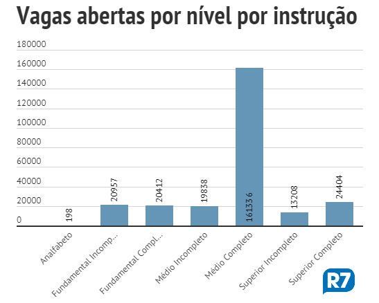 Com 925.881 admissões e 764.545 demissões, a população que concluiu o segundo grau respondeu por 61,97% (161.336) do total de postos de trabalhos criados no mês, segundo dados do Caged (Cadastro Geral de Empregados e Desempregados).