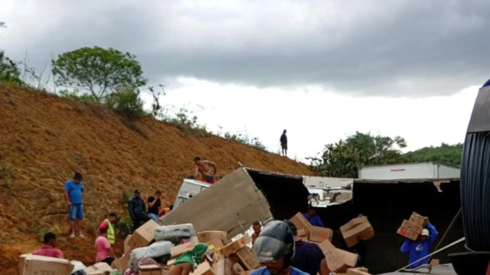 Uma carga de produtos da Shopee foi parcialmente saqueada por populares após um acidente envolvendo uma carreta na BR-116, no fim...